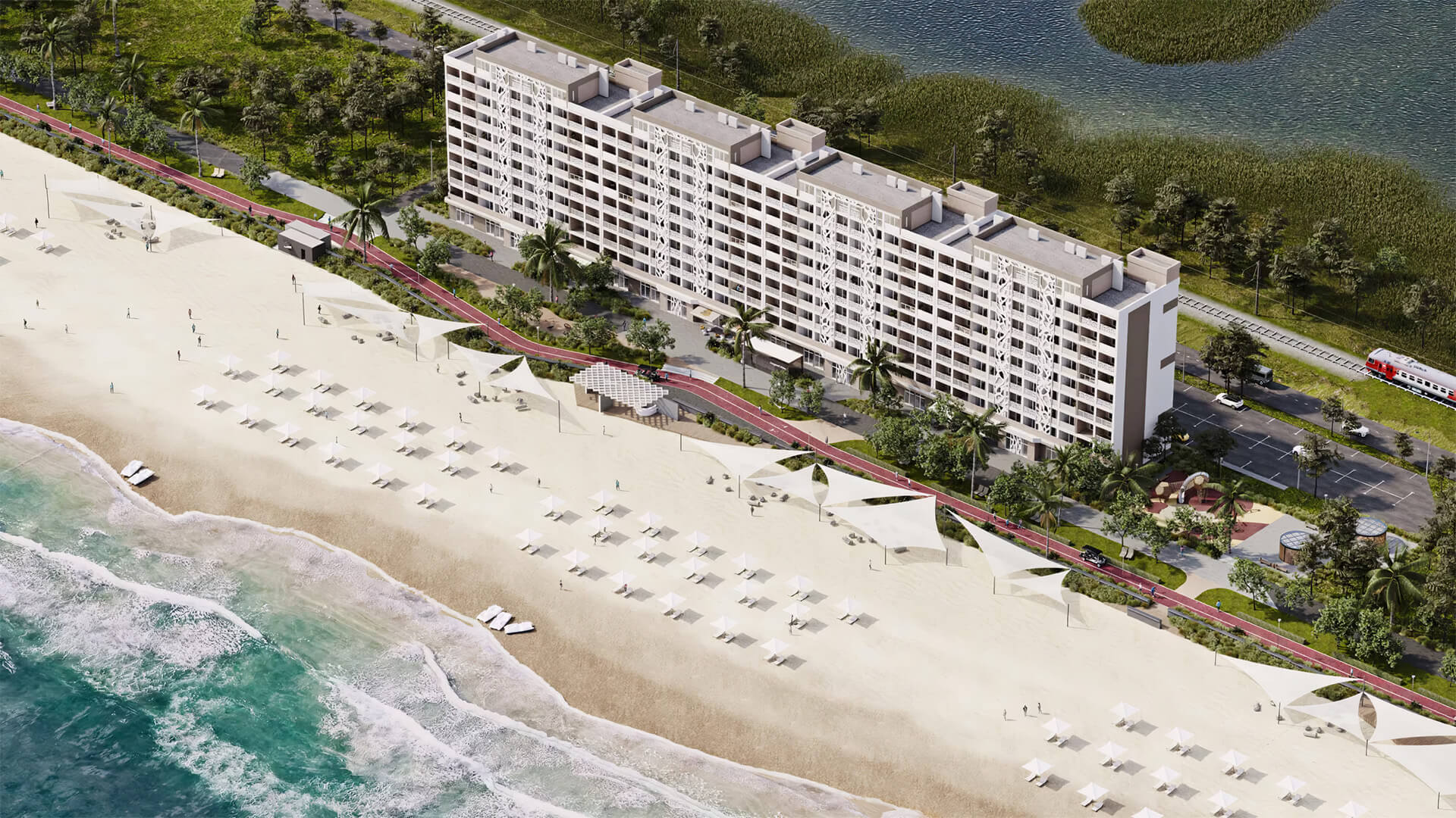 Особое внимание уделено общественным пространствам, которые предназначены для отдыха, общения и активного досуга. В комплексе предусмотрены места для утренних пробежек, йоги, медитаций, а также зоны для проведения культурных и развлекательных мероприятий. Каждый уголок этого курорта создан с заботой о гостях и их комфорте.