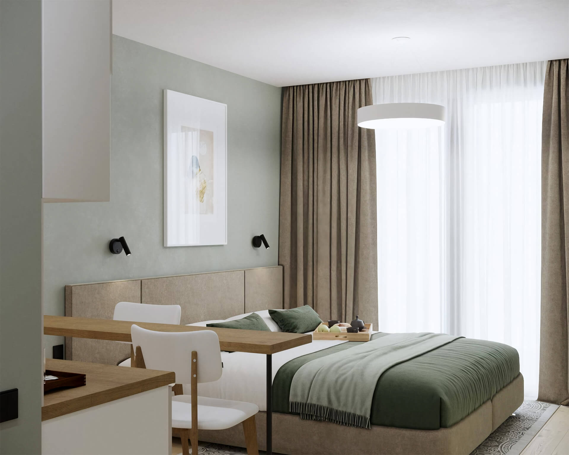 Дизайн апартаментов сочетает в себе элегантность, функциональность и внимание к деталям. Каждое жилое пространство оснащено современной бытовой техникой, дизайнерской мебелью, высококачественным текстилем и косметическими средствами премиального класса. Просторные лоджии позволяют наслаждаться морскими пейзажами в любое время суток.